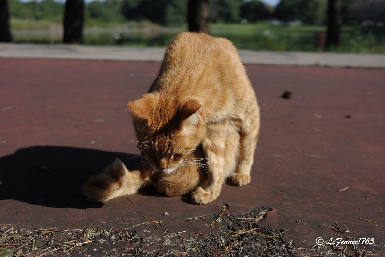 こちらはぶち猫とは池をはさんで反対側にいるちゃー。昨年秋は大分弱っている様子でしたが持ち直したようです。新しい世話係人が現れたか。